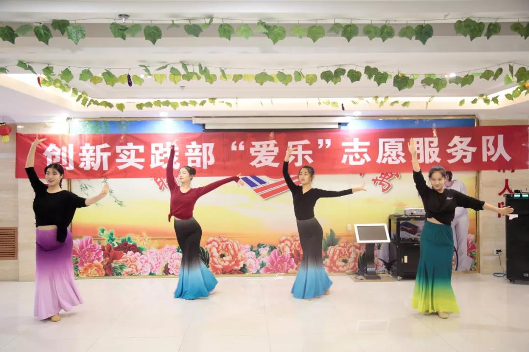 志愿者们为老人们带来了一场多彩纷呈的才艺表演。竹笛演奏《家乡的歌》讴歌了家乡欣欣向荣的动人景象和人们建设美好未来的高度热情;舞蹈《傣族组合》“远上上海少博赛,竹林深处是傣家”,优雅的舞姿展现民族风情;诗歌朗诵《晚照依然红》为老人送去了祝福;琵琶演奏《阳春白雪》“余音绕梁,不绝如缕”的韵味萦绕整个活动现场;《伊犁河的月夜》等歌曲以其动听的旋律带动现场气氛。